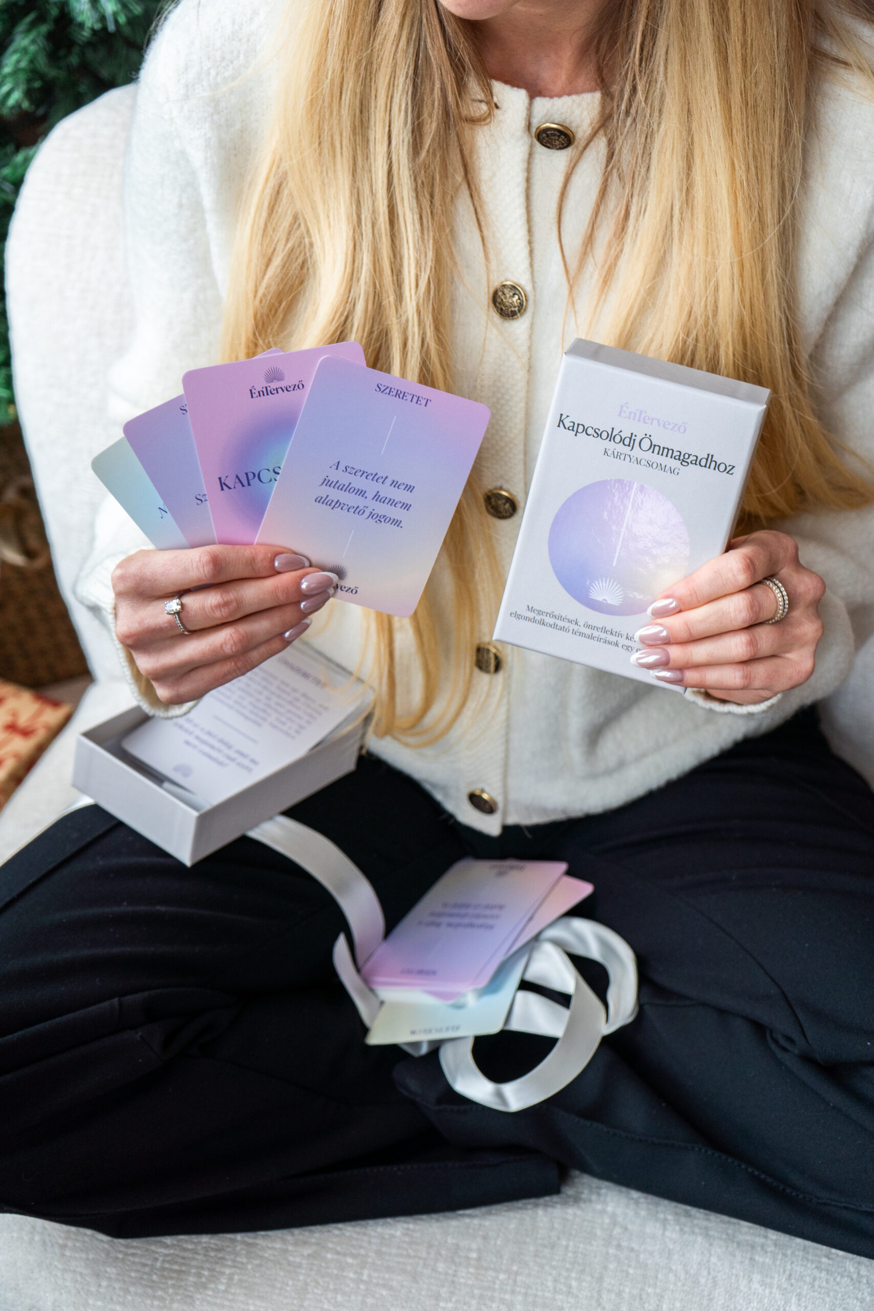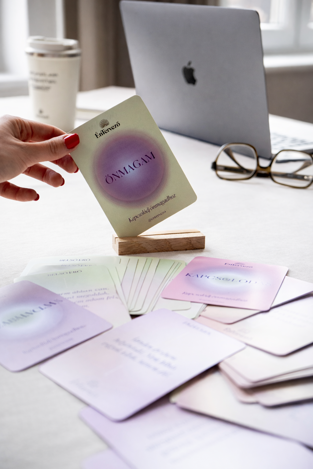 A kártyák rugalmasan illeszkednek a napjaidhoz, legyen szó reggeli-esti reflektálásról, naplózásról, meditációról vagy csoportmunkáról. Húzz egy lapot, állítsd a natúr fa tartóba, és engedd, hogy egész nap emlékeztessen arra, amin épp dolgozol.